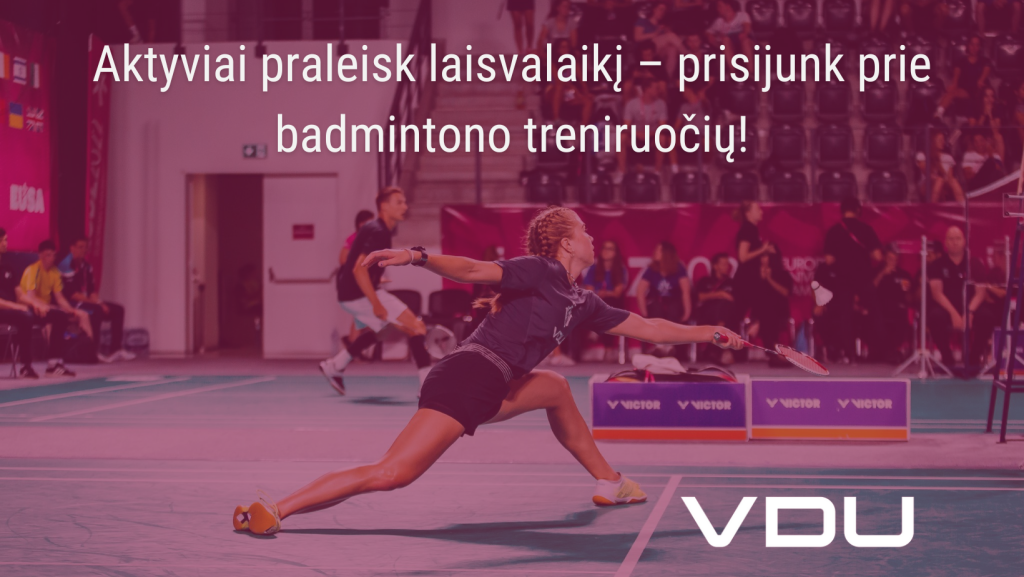 Esate žmogus, kuriam nepatinka sportuoti ir treniruotis vienam? Kviečiame Jus prisijungti į VDU Sporto centre vykstančias badmintono treniruotes, kuriose ne tik fiziškai pajudėsite, išmoksite naujų dalykų, smagiai praleisite laiką, pailsėsite nuo mokslų ar darbų, bet ir susirasite naujų sporto bendraminčių ar draugų.