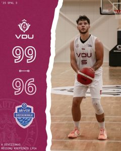 In the second half, the visitors did not slow down and increased their lead (70:61). With 7 minutes remaining in the fourth quarter, Akvilė had a double-digit lead (89:77), but then VMU got a second wind – winning a 15:2 run, they regained the lead (92:91).