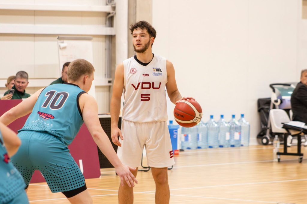 Paulius Velutis led the VDU team to victory with 23 points (4/9 two-pointers, 4/5 three-pointers, 3/5 free throws, 20 efficiency points). Rokas Perveneckas and Domas Uosis scored in double digits with 14 points each, Kajus Leliukas had 11, and Dominykas Černius and Jokūbas Rubinas had 10 points each.